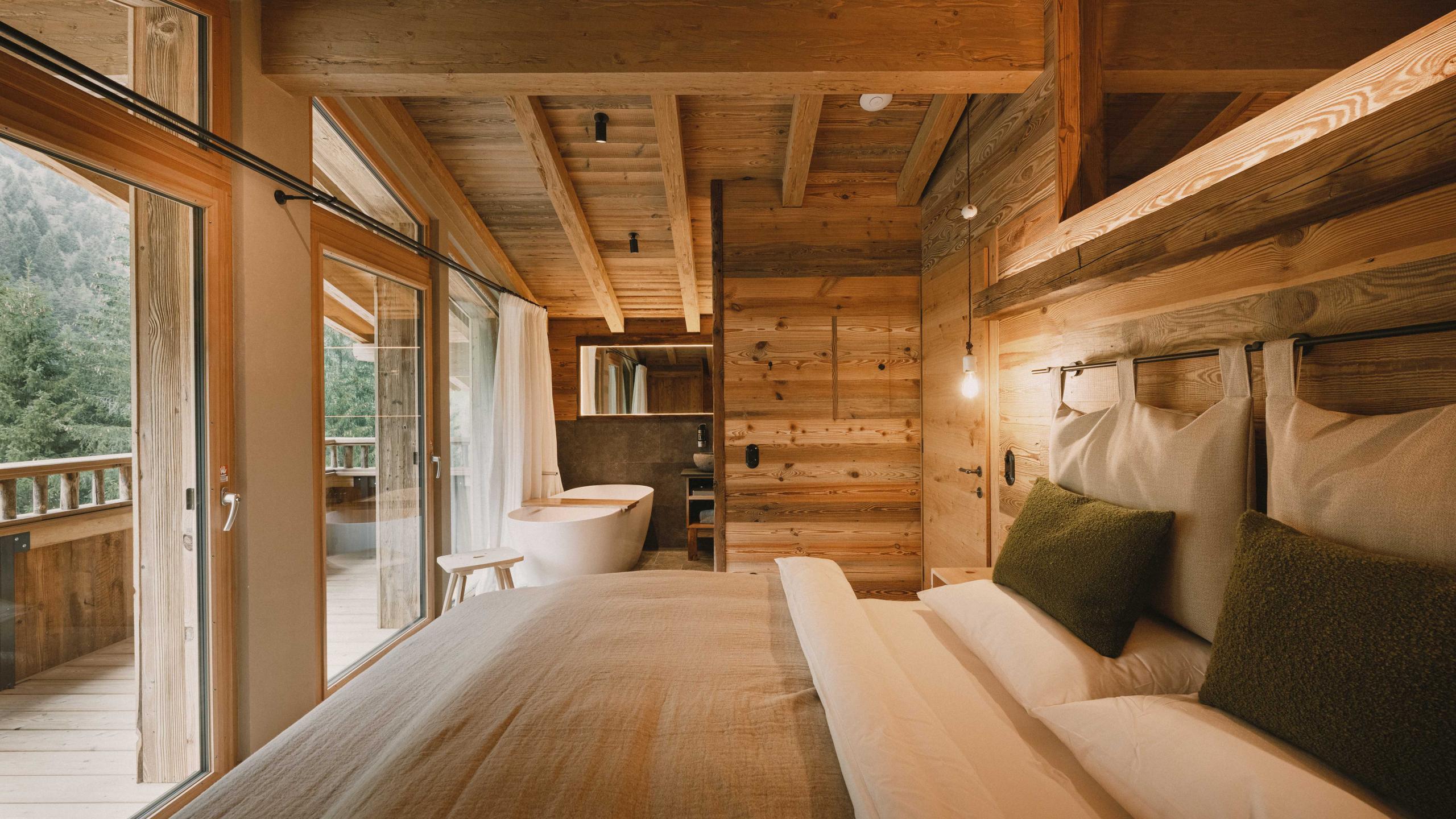 - Doppelzimmer mit offenem Bad und freistehender Badewanne – für besonderen Luxus und Ruhe