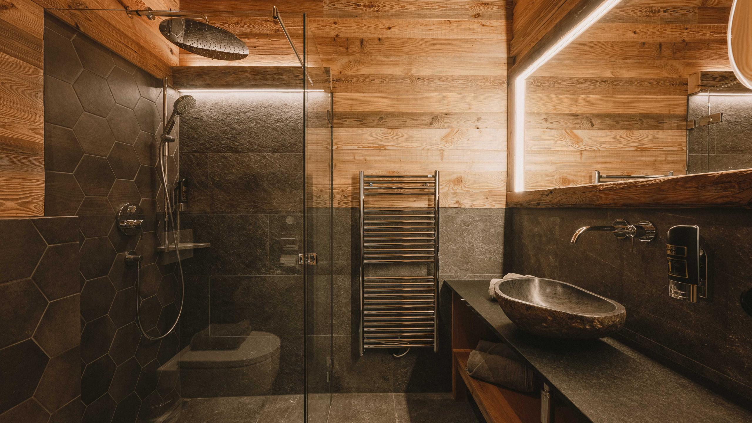 - Großzügiges Badezimmer mit Rainforest-Dusche und WC